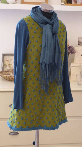 Nach all dem Regen im Sommer erwarten wir uns jetzt einen herzwärmenden Herbst. Celij liefert das passende Kleidungsstück dafür: Ausreichend frech und farbenfroh um den letzten verbliebenen Nebelfetzen die Schamesröte beizubringen und warm genug, auch noch nach Sonnenuntergang auf der Buschenschank-bank mit dem herrlichen Ausblick sitzen zu bleiben. Praktische applizierte Taschen wärmen notfalls die Hände.